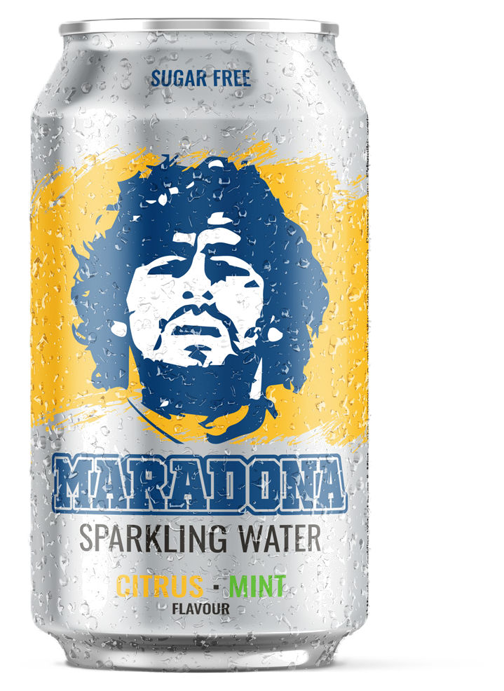 Linea Maradona comprende energy drink, ice tea, acqua frizzante e birra: sei referenze dal packaging distintivo, ideali per chi cerca prodotti d'impatto, moderni e trasversali.